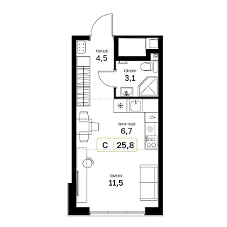 - Общая площадь: 25.8