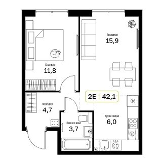 - Общая площадь: 42.1