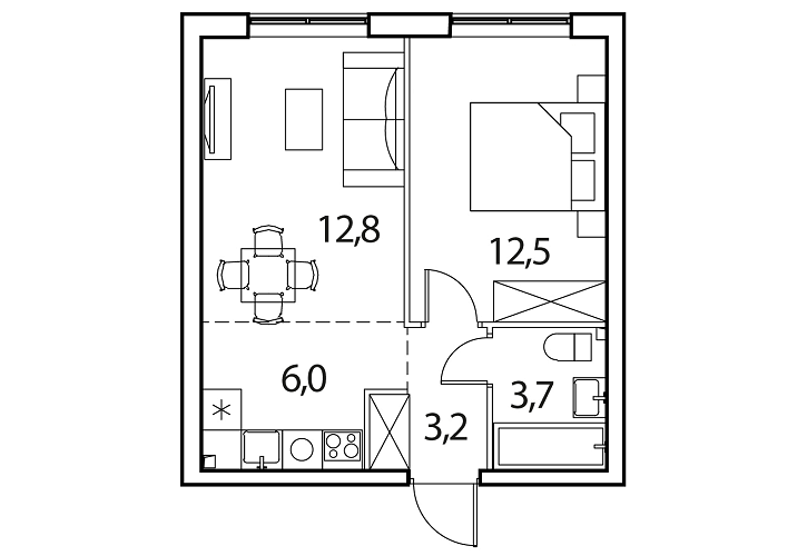 1-комнатная квартира 38.2 м2 № 205, корпус 1А