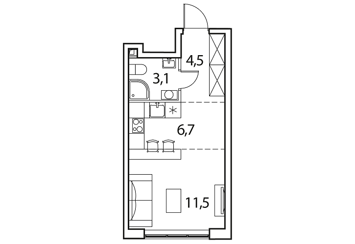 - Жилая площадь: 11.5м2