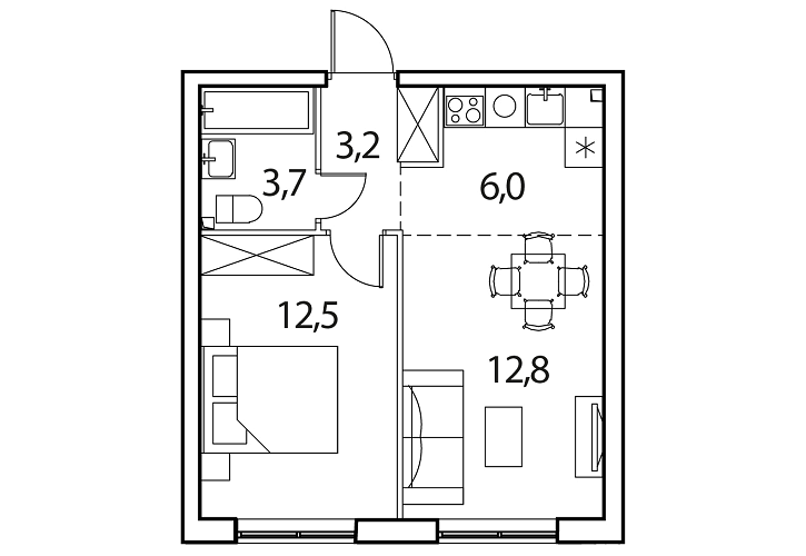 - Общая площадь: 38.3м2