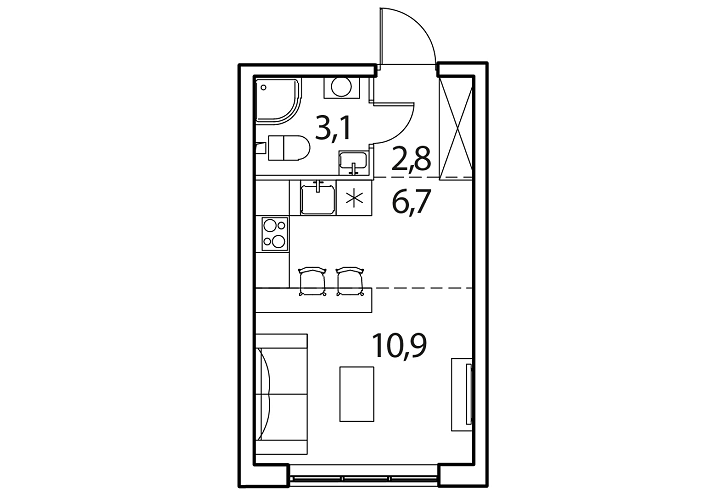 - Общая площадь: 23.7м2