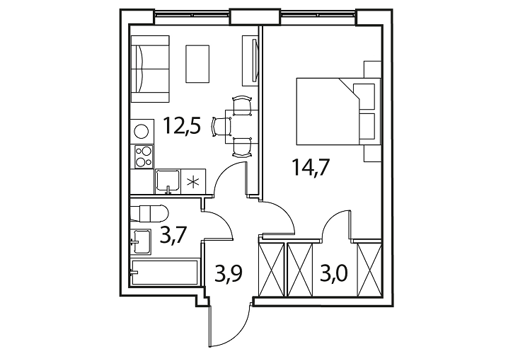 - Общая площадь: 37.7м2