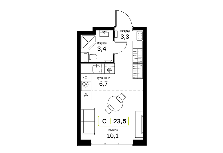 Квартира-студия 23.5 м2 № 153, корпус 5