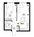 1-комнатная квартира 37.8 м2 № 253, корпус 5