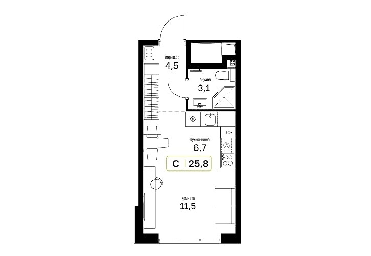 Квартира-студия 25.8 м2 № 372, корпус 5