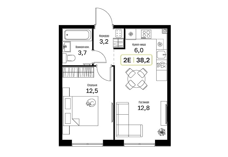 1-комнатная квартира 38.2 м2 № 401, корпус 5